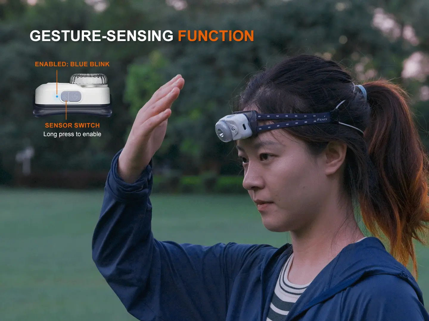 - Gesture-sensing function turns the headlamp on or off with a wave of the hand