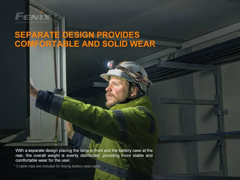 The Fenix HP25R V2.0 is a rechargeable work headlamp that provides an ultra-long runtime of 400 hours on low mode. Powered by its included 5000mAh Li-ion battery, this headlamp can deliver a max output of 1600 lumens. There is a separate battery case located on the headlamp's rear; this unique battery case includes a USB Type-C charging port for easy and fast charging. 60° tilt mechanism allows you to direct light where needed and the lockout function avoids accidental activation. For all-night exploring or work demands, the Fenix HP25R V2.0 headlamp never fails you.