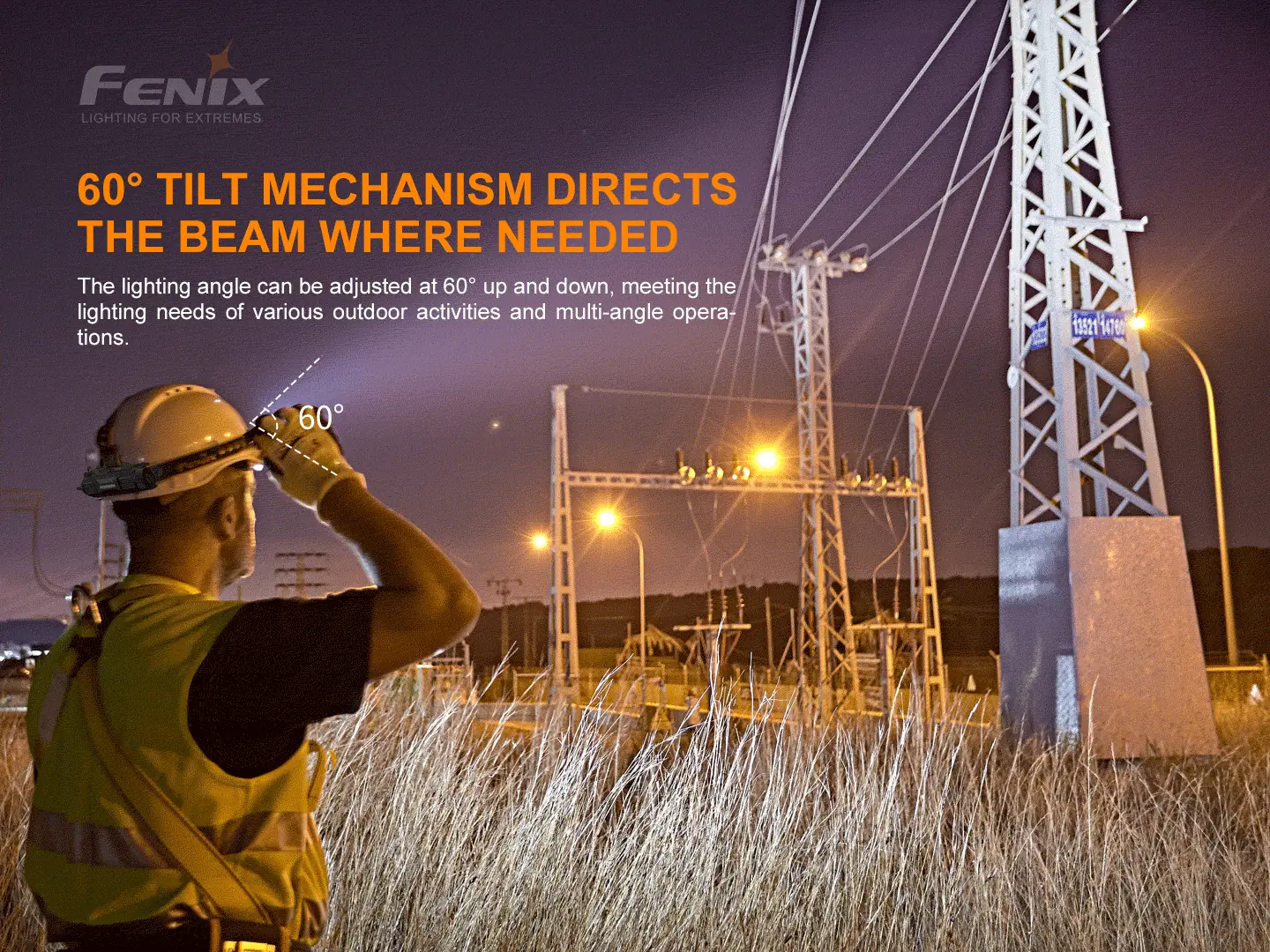 - 60° tilt mechanism directs the beam where needed.